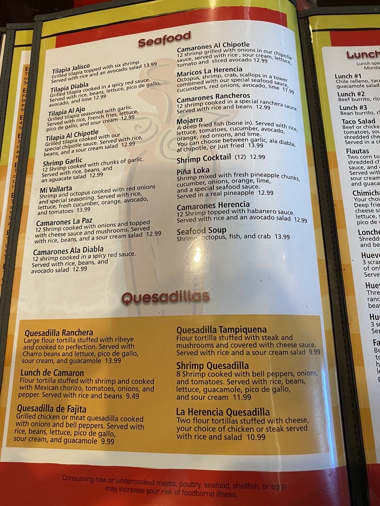 La Herencia Mexican Grill Menu (Update 2025)